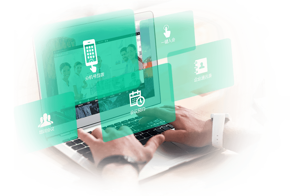 • 云企业通讯录统一管理并自动同步到终端,实现基于联系人的预约、呼叫等功能